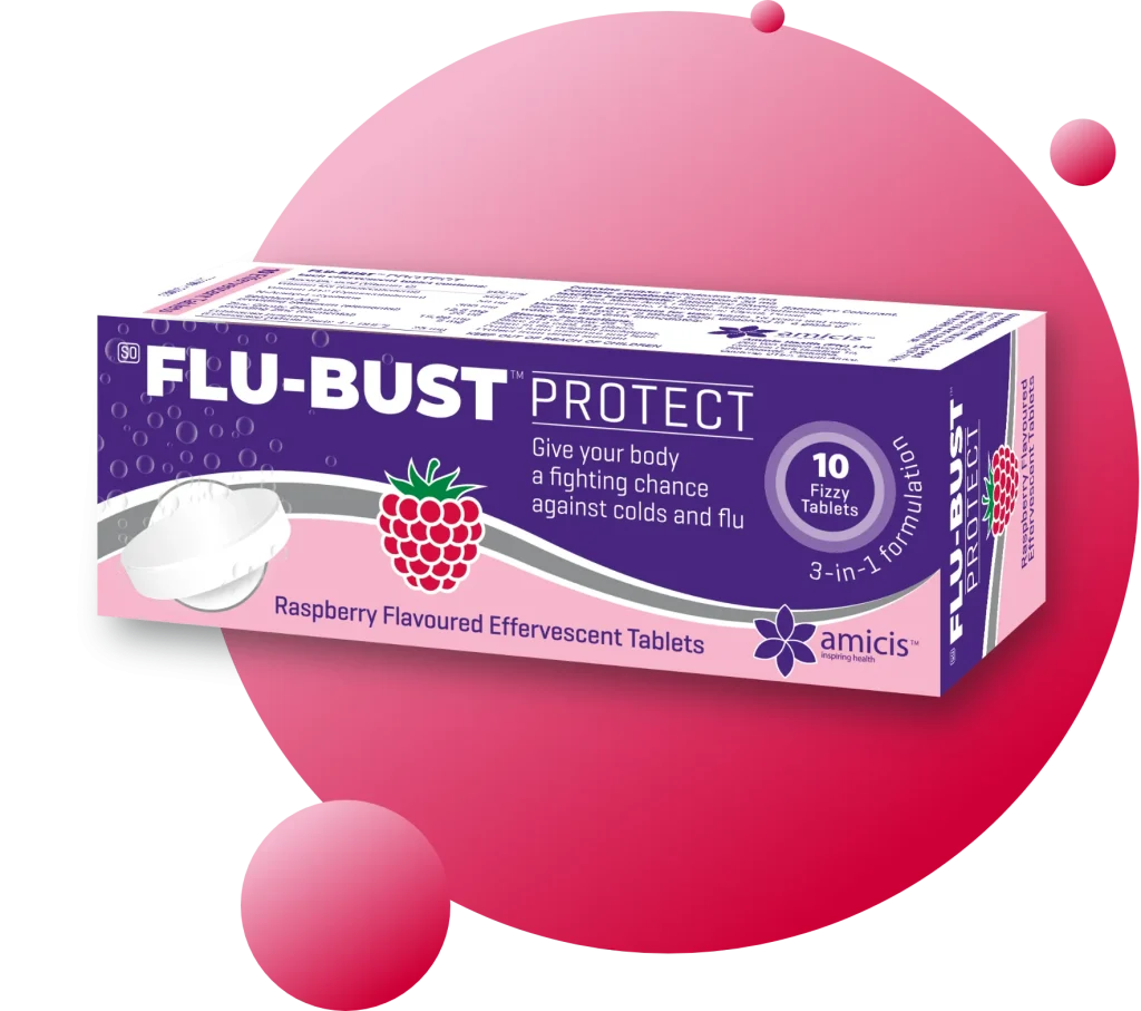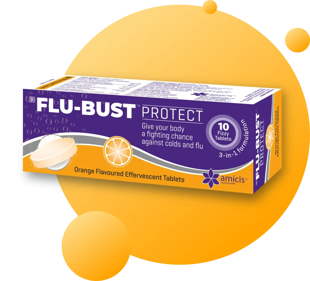 Flu-Bust Protect is a scientifically formulated 3-in-1 flu recovery solution