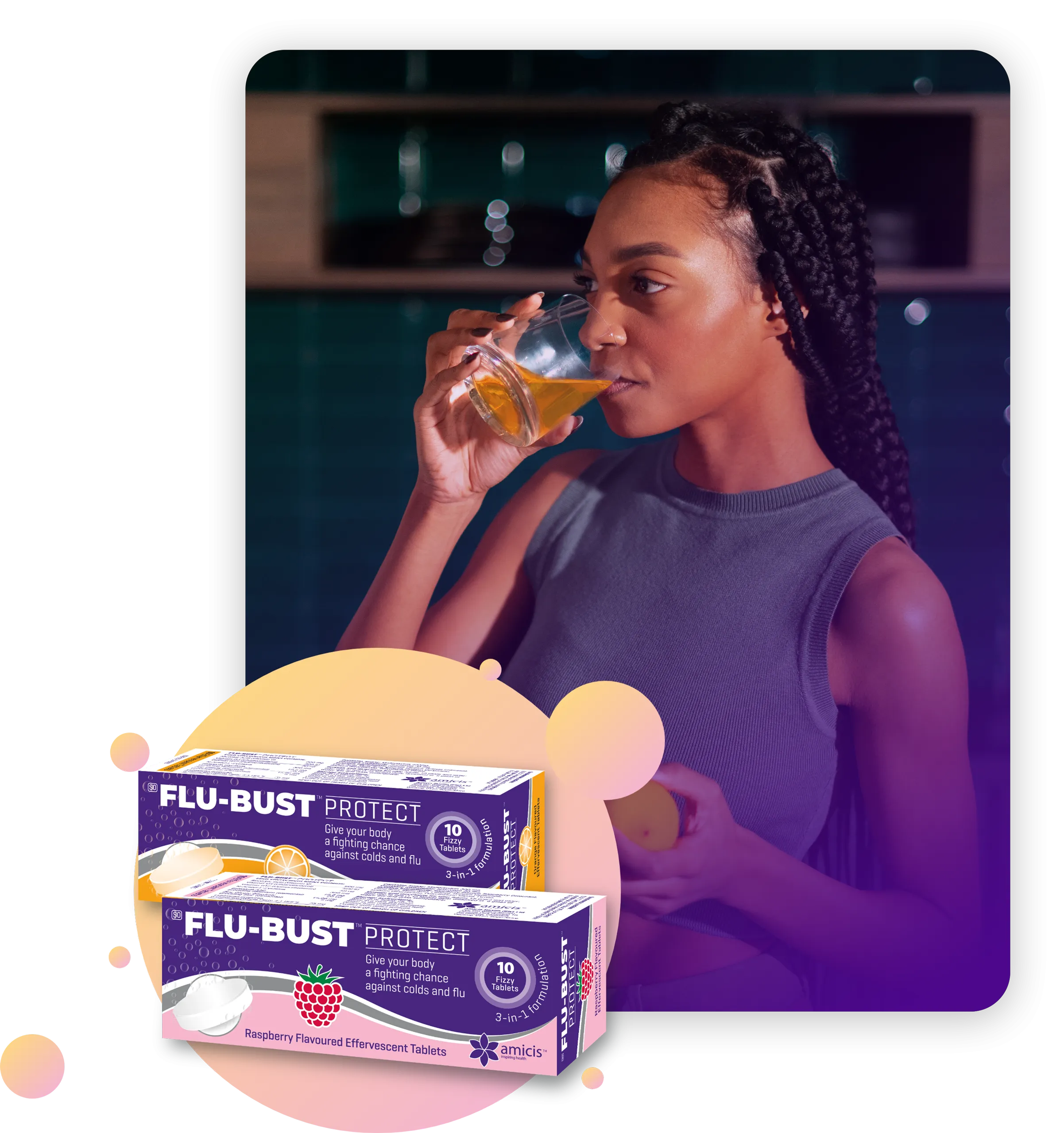 Flu-Bust Protect is packed with carefully selected ingredients to support your body through every stage of a cold or flu.